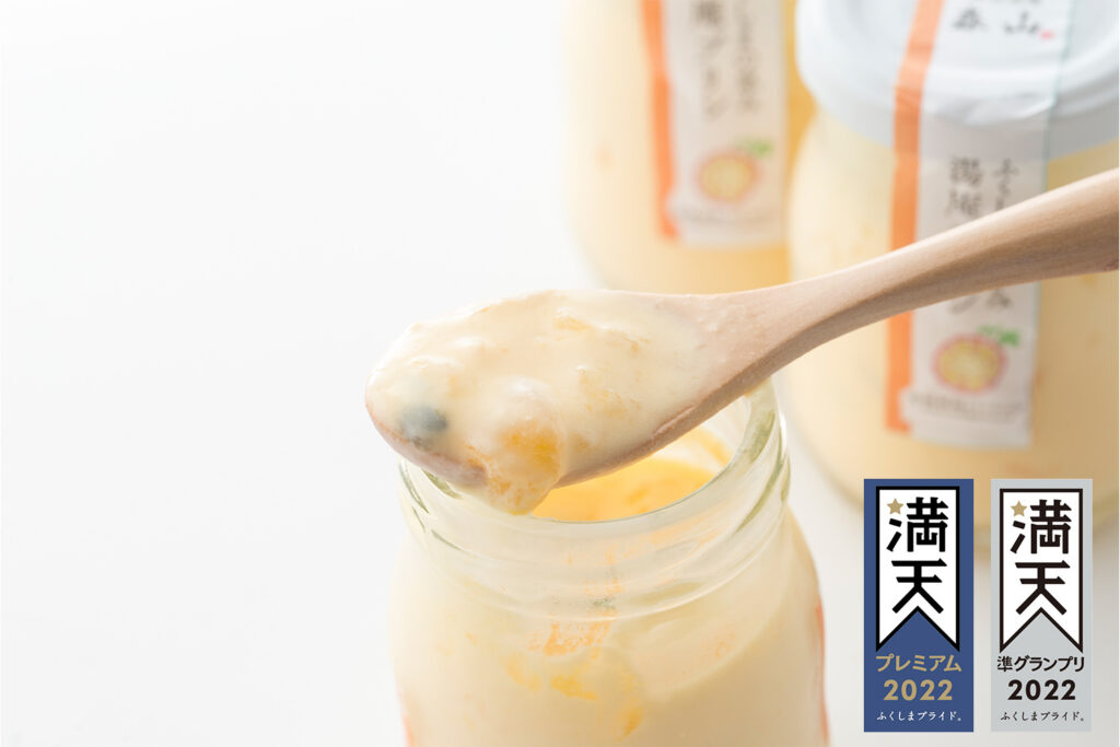 ふくしま満天堂は、福島県内の優れた商品を発掘・発信するプロジェクトで、県内各地から選りすぐりの逸品がエントリーされます。その中で「湯庵プリン 常磐富岡パッション」が高い評価をいただき、準グランプリに選ばれました。
